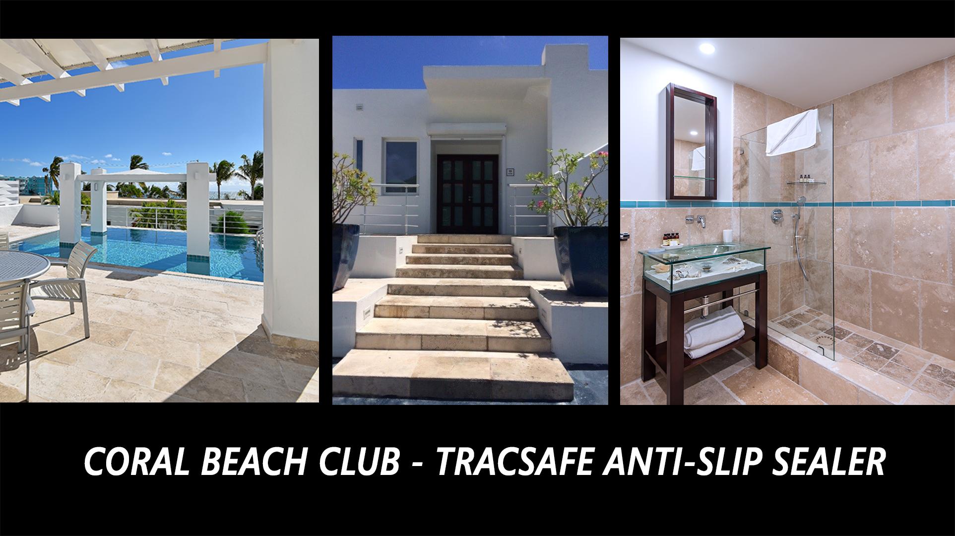 Before: The Coral Beach Club in St. Maartan has taken safety steps to make sure its guests are stepping safely. Because wet pool decks and showers can be slippery, club management has covered surfaces near 14 pool areas and 41 shower floors with TracSafe Anti-Slip Sealer. With anti-slip ratings up to twice the OSHA standard, TracSafe provides aggressive anti-slip performance with all-weather durability for both interior and exterior areas around any surface.