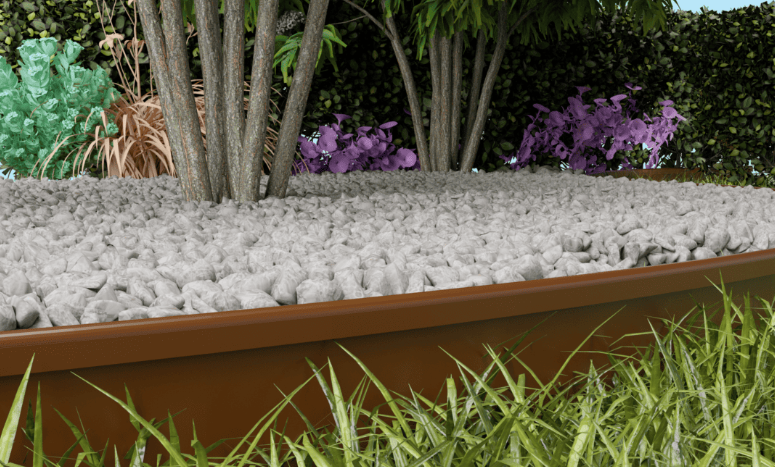 It forms an industrial or more rustic appearance. Great for installations where edging is desired to blend with it’s surroundings.