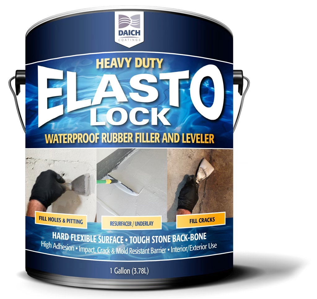 ElastoLock: Flexible waterproof protection where you need it mostElastoLock Waterproof Filler and Leveler is engineered for versatility and durability. Its unique elastomeric formula allows for seamless filling, patching and leveling of cracks, gaps and irregularities in a wide array of surfaces. The product can be used on interior and exterior walls, ceilings, basement walls and floors, pool decks and other wet surfaces, bathrooms, kitchens and laundry areas prone to moisture.